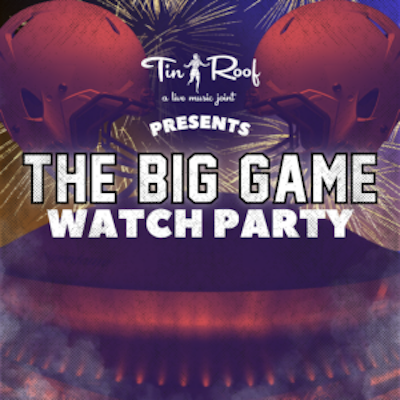 Catch every snap, tackle, and pass of the Big Game here at Tin Roof Myrtle! Get here early to secure a table and take advantage of our great specials! With the game on every TV, game sound on, and the projector screen we're ready to celebrate the best Sunday of the year!