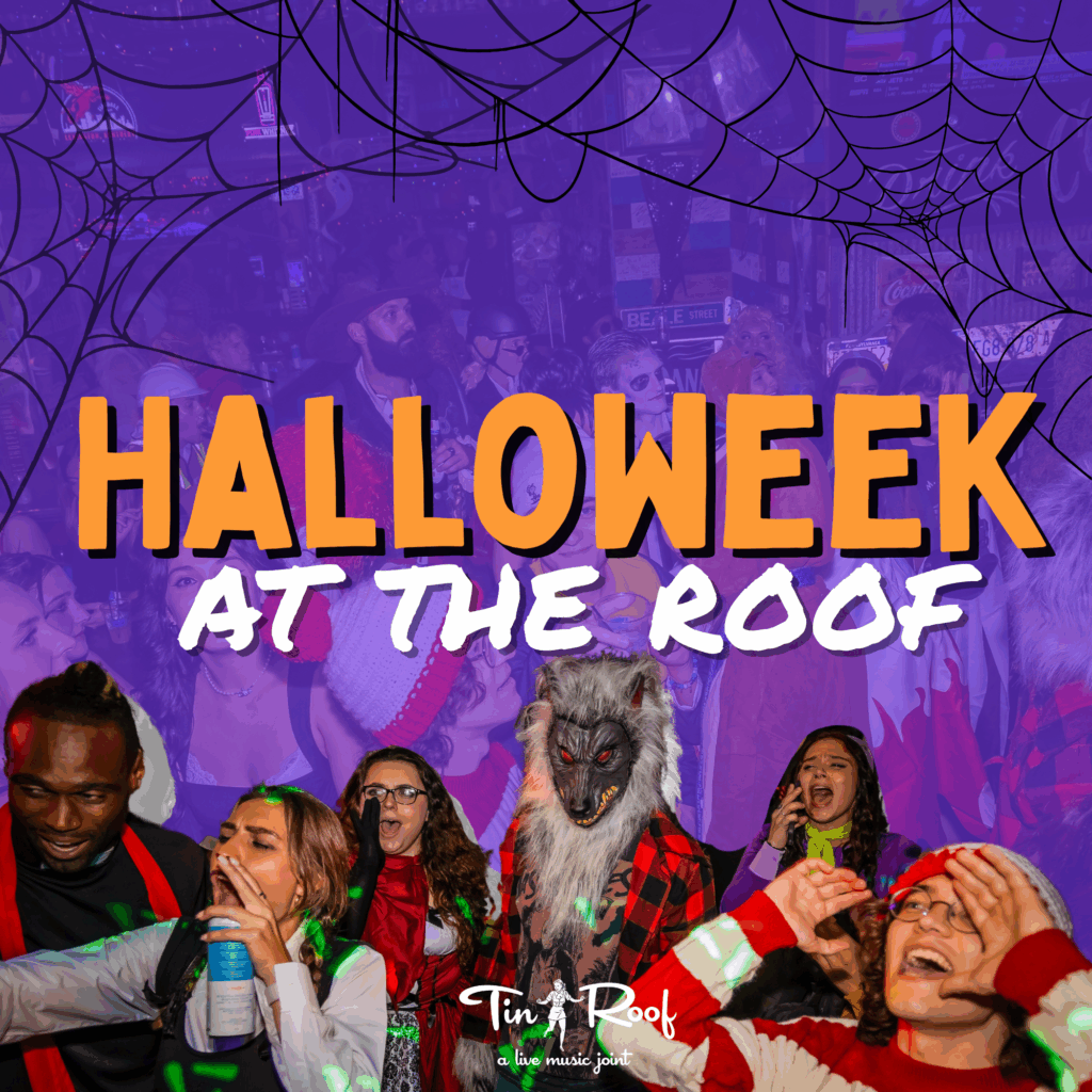 It's the spookiest time of the year and we're celebrating ALL WEEK LONG! Grab your crew, dress to impress (or scare), and join us for a full week of tricks, treats, and Tin Roof fun!